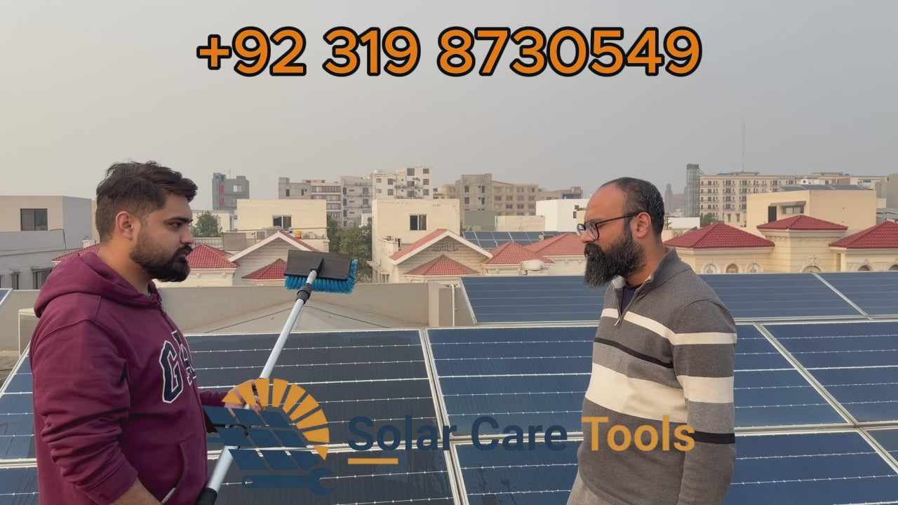 Clean your solar panels safely from the ground with our water-fed telescopic brush — no ladders, no damage.